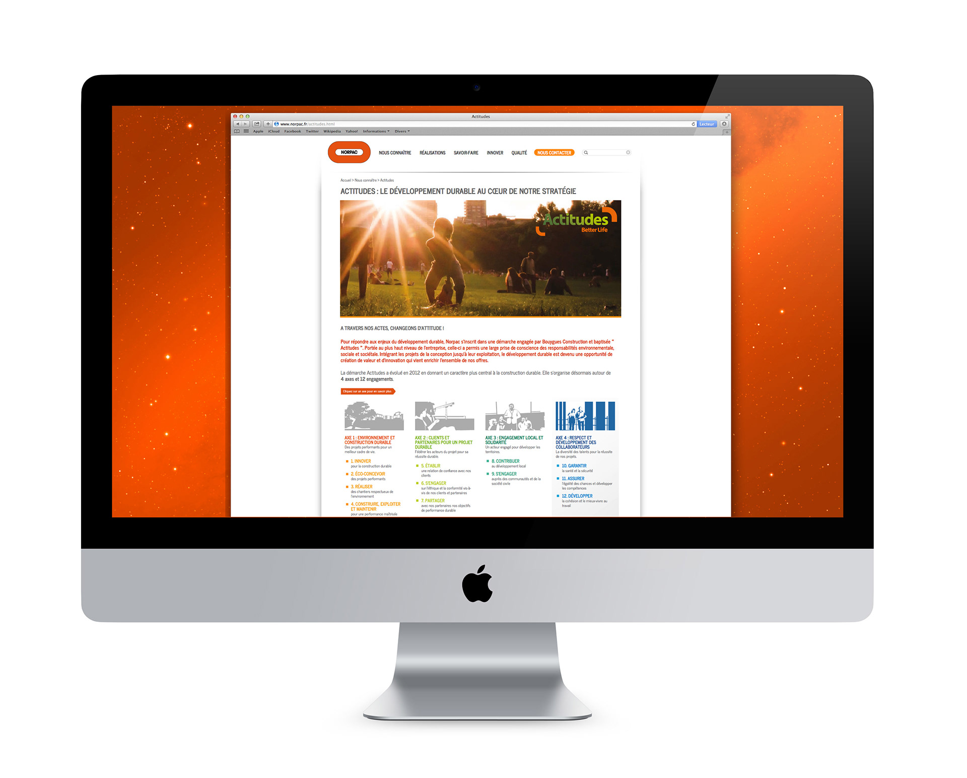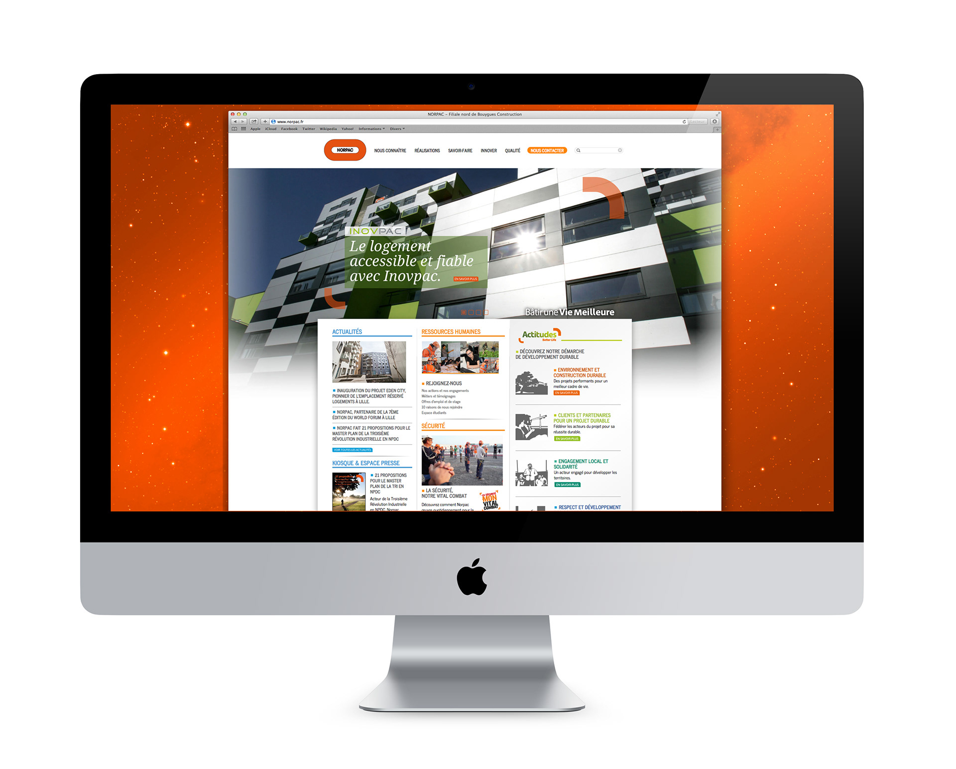 Norpac est la filiale nord de Bouygues Construction. Peek-a-Boo! a été chargé de réaliser le nouveau site de la société. Eklosion en a assuré le développement et l'intégration.